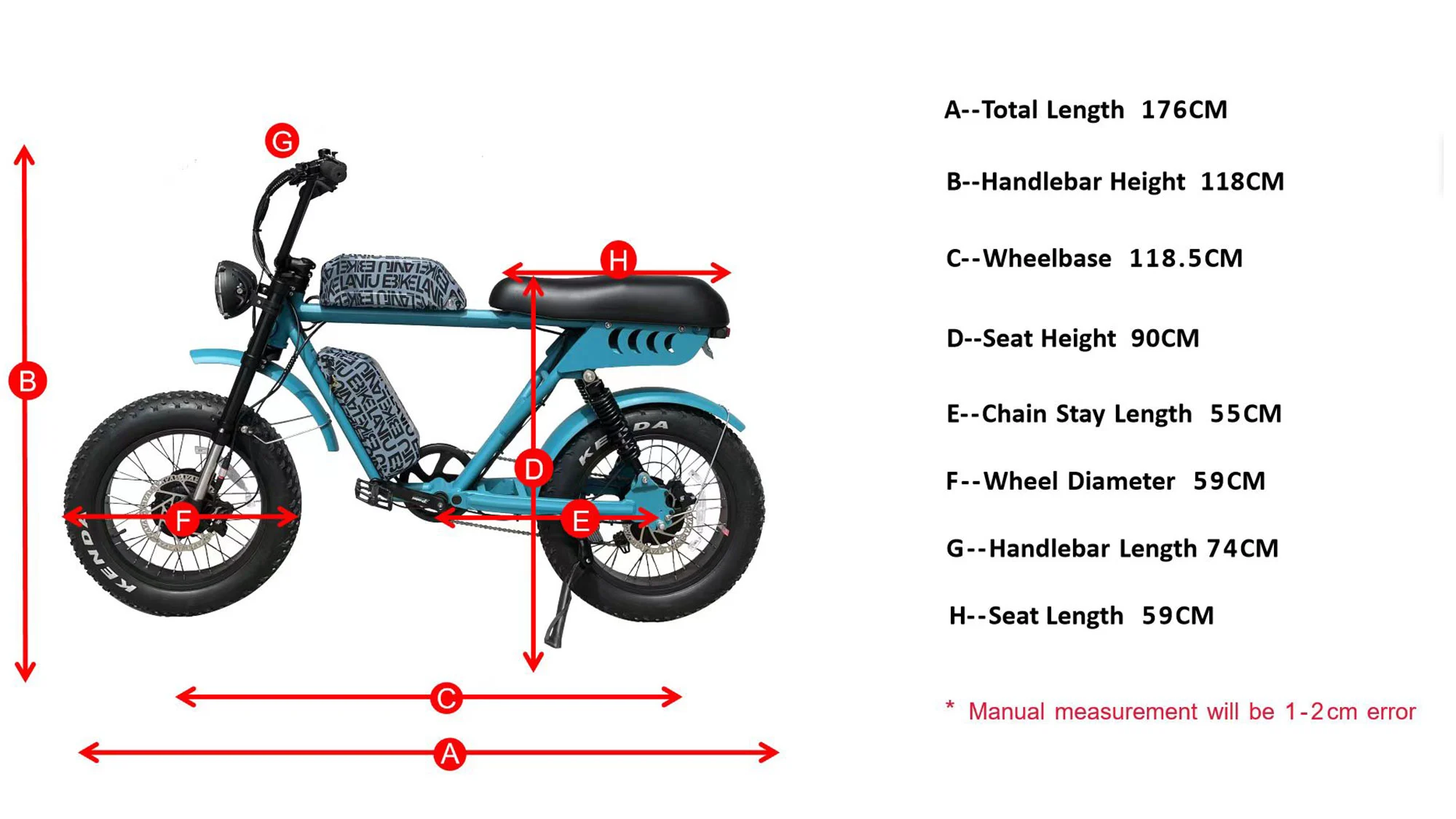 듀얼 배터리 구축 - 52V/17.5Ah 리튬 - 이온 배터리는 7 - 8 시간 내에 완전히 충전되며 평균 55 마일의 범위를 제공합니다. 편리한 충전을 위해 배터리를 제거 할 수 있습니다. 당신의 e - 자전거를 콘센트로 운반 할 필요가 없습니다!